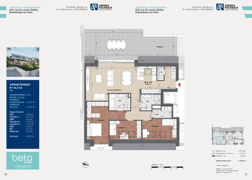 L'appartement B 2-12 de 139 m2 se compose comme suit: