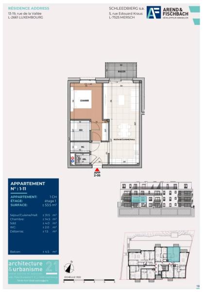 L'appartement 1-11 de 53.69 m2 se compose comme suit: