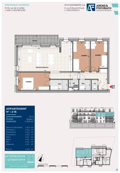 L'appartement 2-16 de 113.49 m2 se compose comme suit: