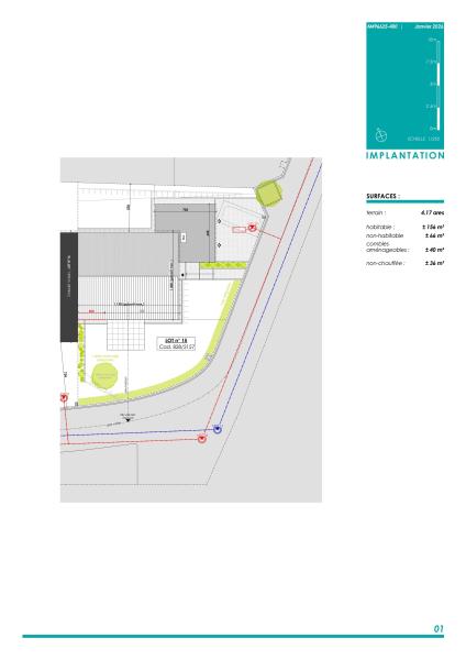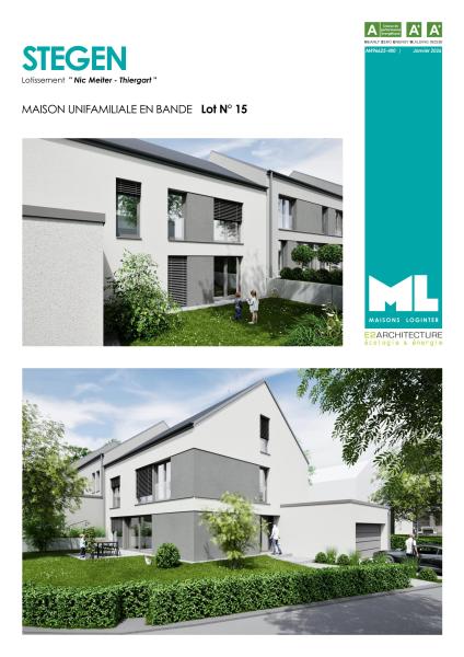LOT 15: maison unifamiliale en bande sur un terrain de 4,17 ares avec une surface habitable de +/- 156 m2 et une surface totale de +/-298m2 comprenant: